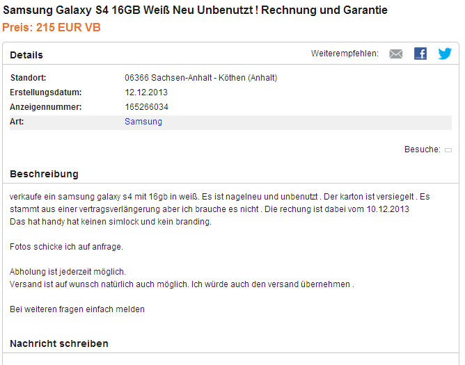 Der kleinanzeigenmarkt für die hosentasche ebay deutschland. This scam site should be avoided!
